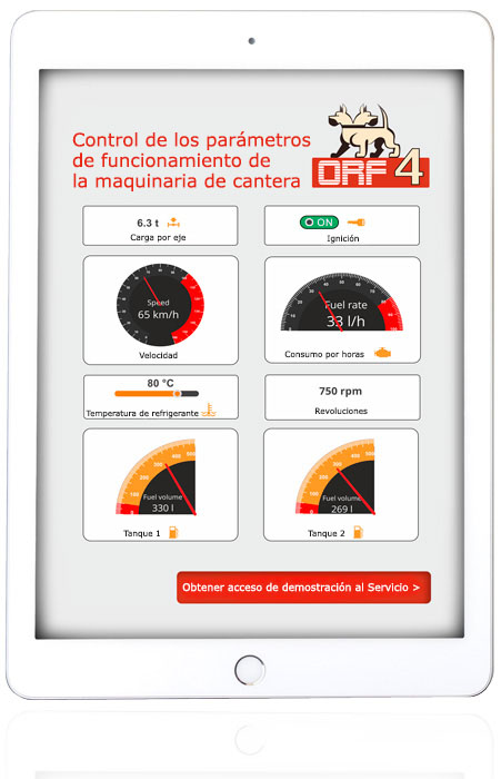 Las soluciones Rigel Telematics para maquinaria de cantera están diseñadas para controlar el consumo de combustible y el tiempo de funcionamiento del motor, monitorear el resto de combustible en el tanque, determinar los volúmenes de cargas y descargas de combustible, diagnosticar remotamente el estado de los componentes, monitorear los modos de operación del equipo — acumulativo y en los modos de funcionamiento «inactivo», «funcionamiento óptimo», «sobrecarga» del motor.