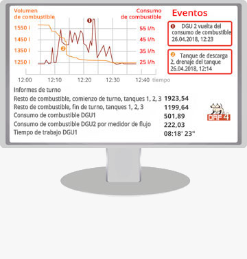 Solución: medidor de flujo de combustible DFM y terminal de control offline.